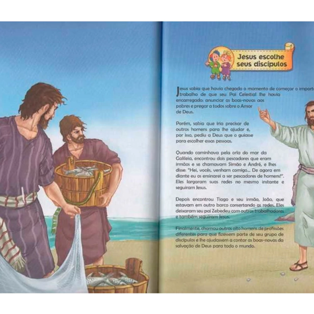 Este é um precioso livro para iniciar as crianças nos estudos e no amor pela leitura da Palavra de Deus. Contém os episódios mais importantes da Bíblia: desde a Criação do mundo até a ressurreição de Jesus, as crianças se divertem de página a página, lendo sobre o Maravilhoso Livro de Deus. Introduz aos pequenos o conhecimento cronológico das histórias mais importantes e dos personagens favoritos das Escrituras Sagradas. Contém também as Parábolas de Jesus. Está belissimamente ilustrado no estilo Clássico que encantará aos pais compartilhar com seus filhos. Estas cenas permanecerão para sempre em suas mentes e corações.