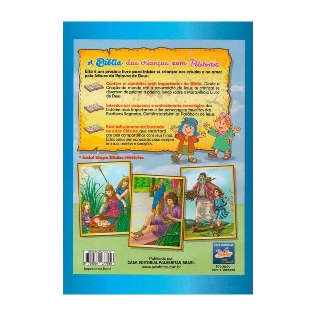 A Bíblia das Crianças com Palabritas tem a função de trazer para os pequenos, de uma maneira didática e simples, apresentar cada história na linguagem deles, facilitando assim tanto a compreensão da mesma, quanto também caso seja usada por um professor de escola dominical.