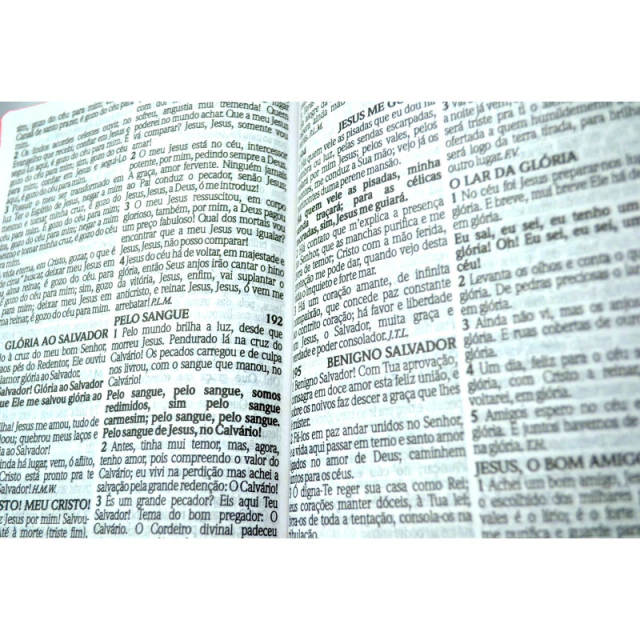 Esta bíblia possui o texto bíblico completo: Antigo e Novo Testamento, na tradução de João Ferreira de Almeida, na versão Revista e Corrigida (a linguagem mais tradicional) e com Harpa Avivada e Corinhos no final.