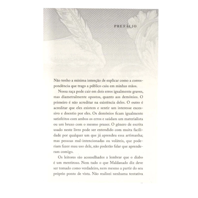 Irônica, astuta, irreverente. Assim pode ser descrita esta obra-prima de C.S. Lewis, dedicada a seu amigo J.R.R. Tolkien. Um clássico da literatura cristã, este retrato satírico da vida humana, feito pelo ponto de vista do diabo, tem divertido milhões de leitores desde sua primeira publicação, na década de 1940; agora com novo projeto gráfico, tradução atual e capa dura.