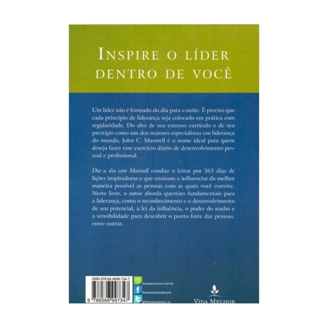 Um líder não é formado do dia para a noite. É preciso que cada princípio de liderança seja colocado em prática com regularidade. Do alto de seu extenso currículo e de seu prestígio como um dos maiores especialistas em liderança do mundo, John C. Maxwell é o nome ideal para quem deseja fazer esse exercício diário de desenvolvimento pessoal e profissional. Dia a dia com Maxwell conduz o leitor por 365 dias de lições inspiradoras e que ensinam a influenciar da melhor maneira possível as pessoas ao seu redor.