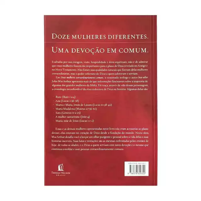 O livro Doze Mulheres Extraordinariamente Comuns, escrito por John MacArthur, é uma obra fascinante que explora a vida e o impacto de doze mulheres mencionadas na Bíblia. Com habilidade narrativa e profundidade teológica, MacArthur oferece uma perspectiva única sobre a história dessas mulheres, destacando como suas vidas e contribuições foram essenciais para a narrativa bíblica e para a fé cristã.