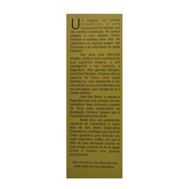 Nesta obra, que poderíamos chama-la de introdutória à maior obra de Karl Barth (Dogmática Eclesiástica), o teólogo suíço parto do Credo apostólico para formular um corpo dogmático cristão, em que a idéia de cada afirmação contida na mais antiga confissão de fé da igreja Cristã é tratada com grande profundidade.
